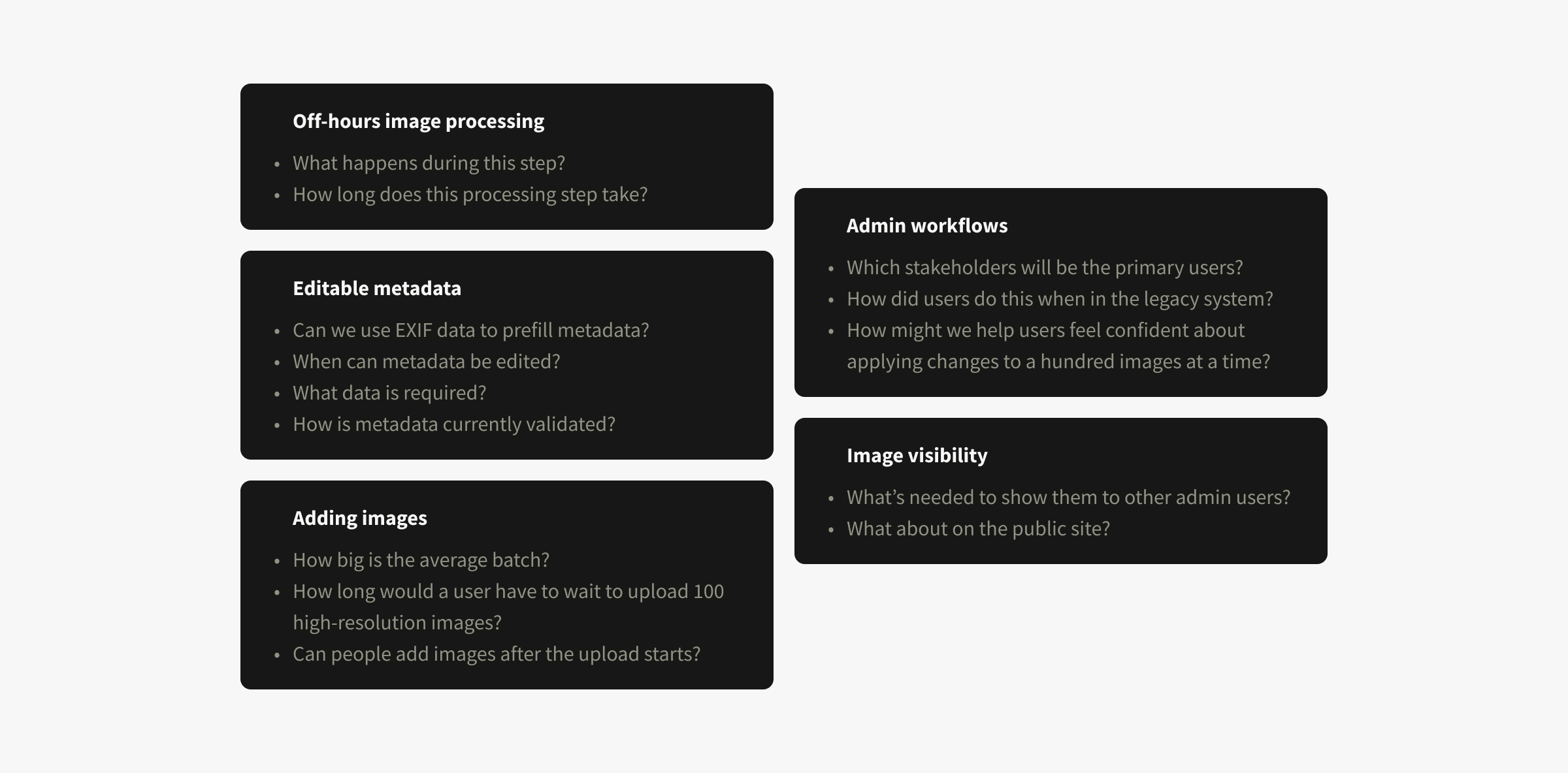 - The admins wanted bulk image upload capability but had captured less than four sentences of requirements in JIRA.