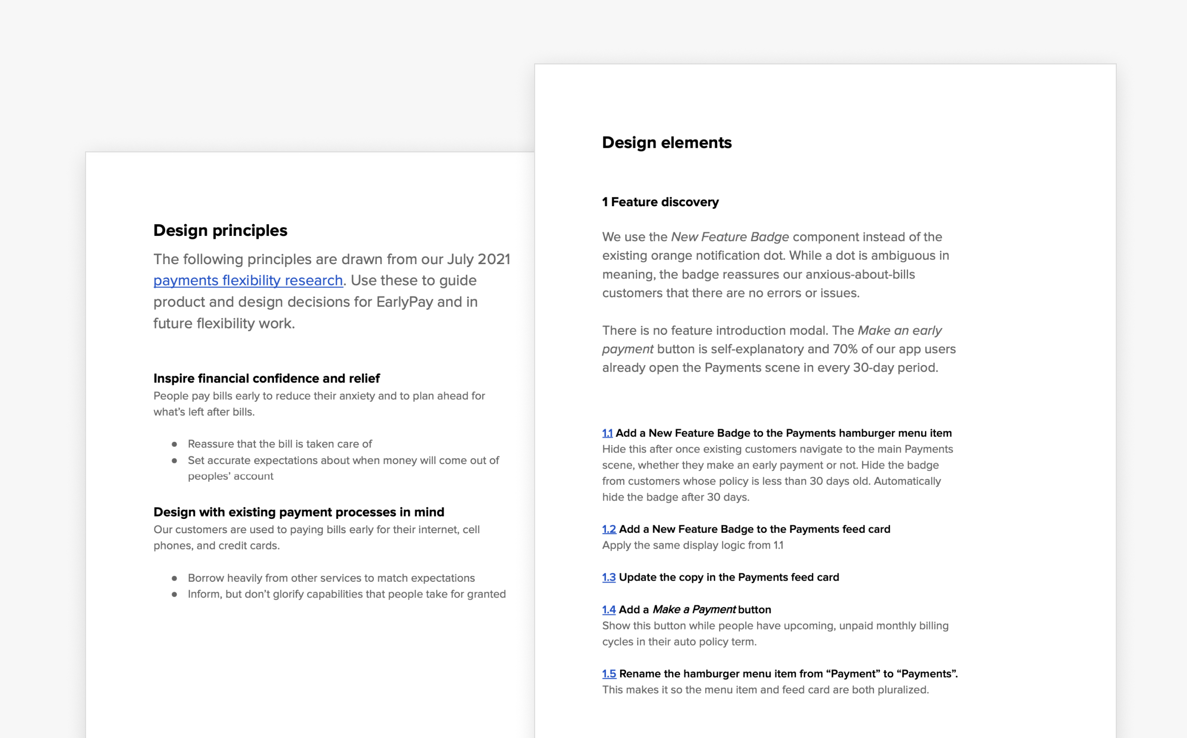 I wrote design documentation to detail backend logic for engineers and to articulate design decisions for future reference.