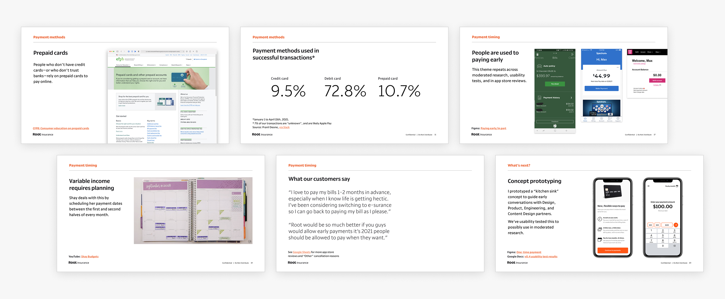 I presented my exploratory research to my product, design, and research teammates. We came to the same hypothesis: our customers would benefit more from flexibility in payment timing rather than in payment methods.